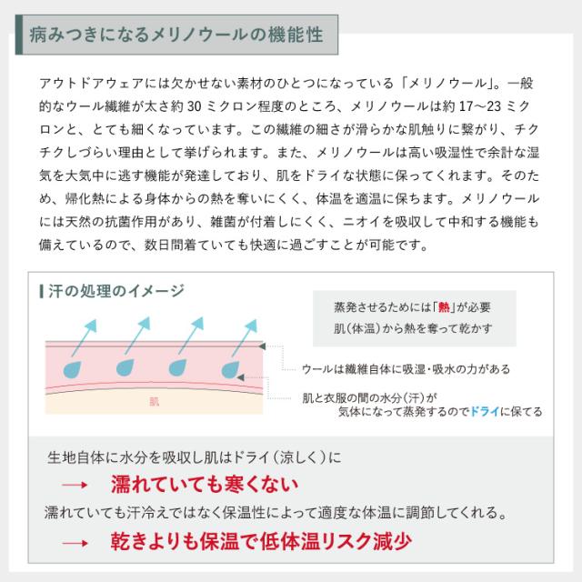【日本正規代理店】洗濯機で洗えてお手入れ簡単!高品質のメリノウールを使用した保温性抜群のウールウェア!チクチクしないソフトな肌触りや天然の消臭効果、吸湿速乾で機能性も抜群!