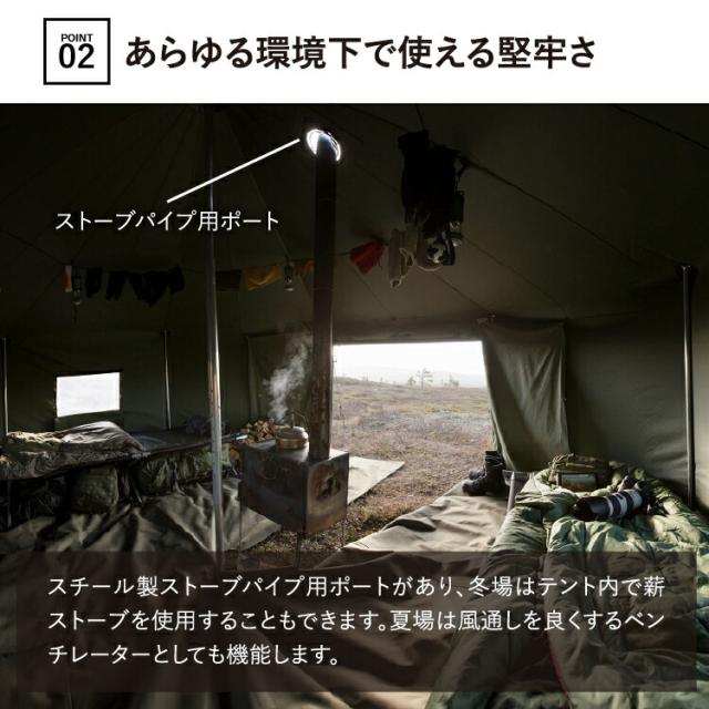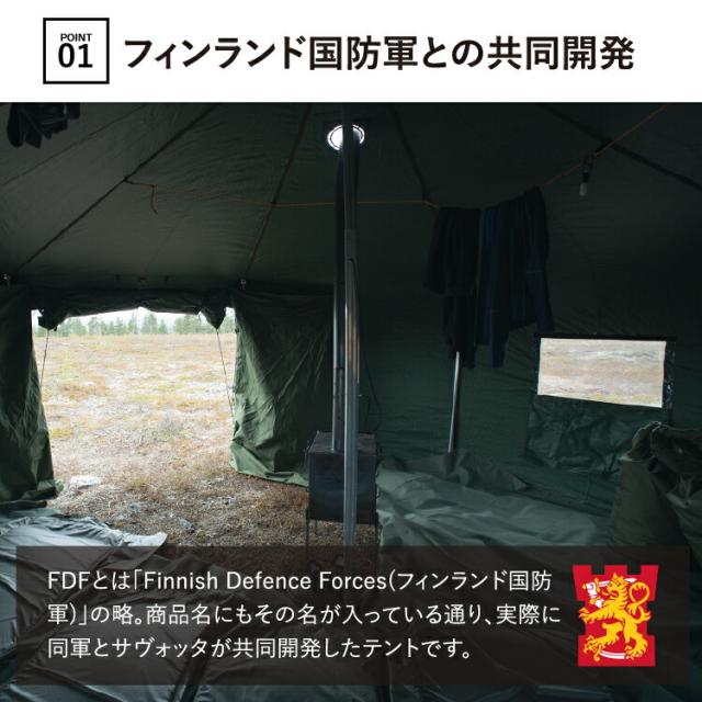 フィンランド国防軍とサヴォッタが共同開発した10人用テント。
