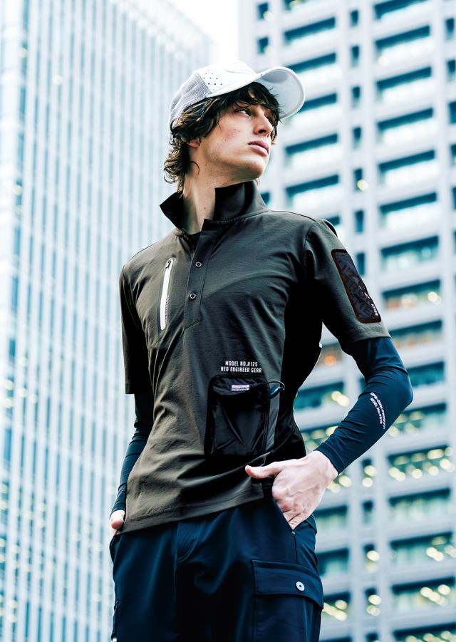 脇&背面中心には伸長率約40%、伸長回復率約94%を誇るハイレベルな冷感ストレッチ性能素材を採用。一般基準約1.75倍の接触冷感指数を実現し、ナイロン素材特有の堅牢性と速乾性も併せ持ちます。