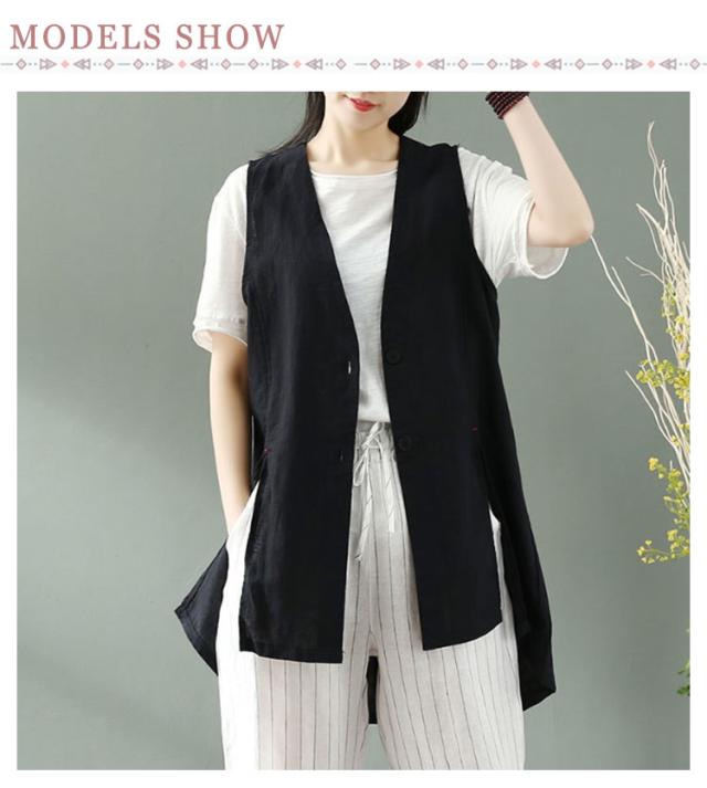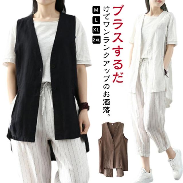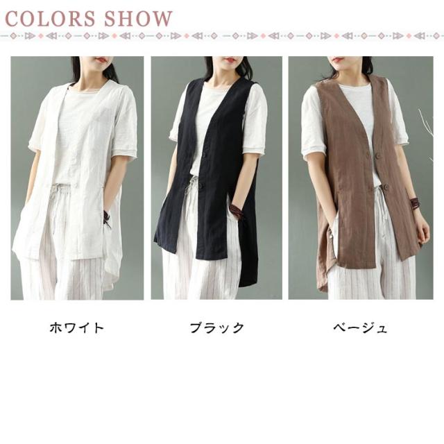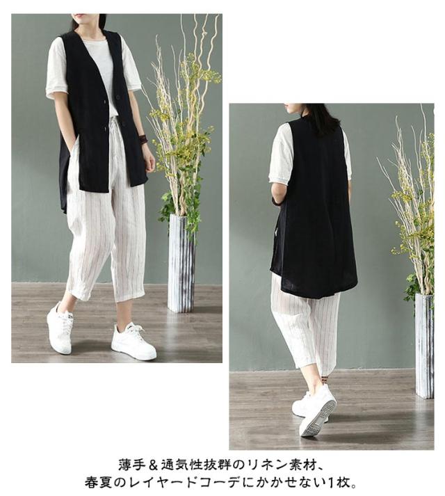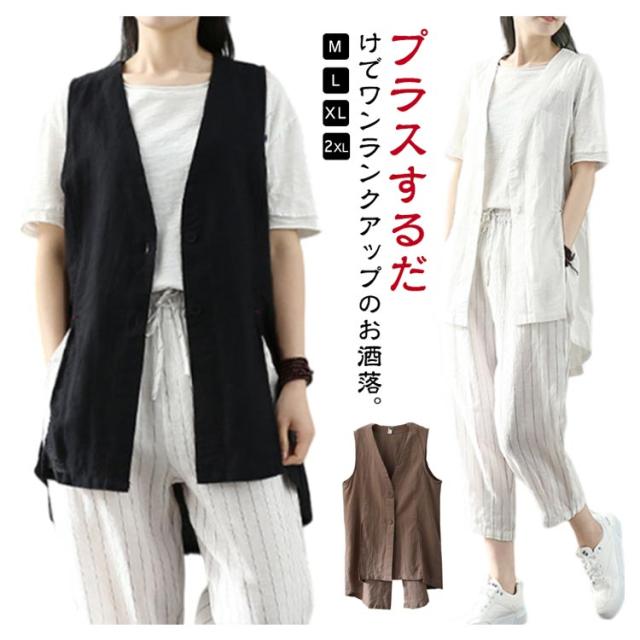送料無料 ロングジレベスト スリット入り ベスト ロング丈 綿麻 リネンベスト ノースリーブ ジャケット レディース 薄手 夏 レイヤード 重ね着 前開き ベスト 羽織り 袖なし カーディガン トップス Vネック 涼しい