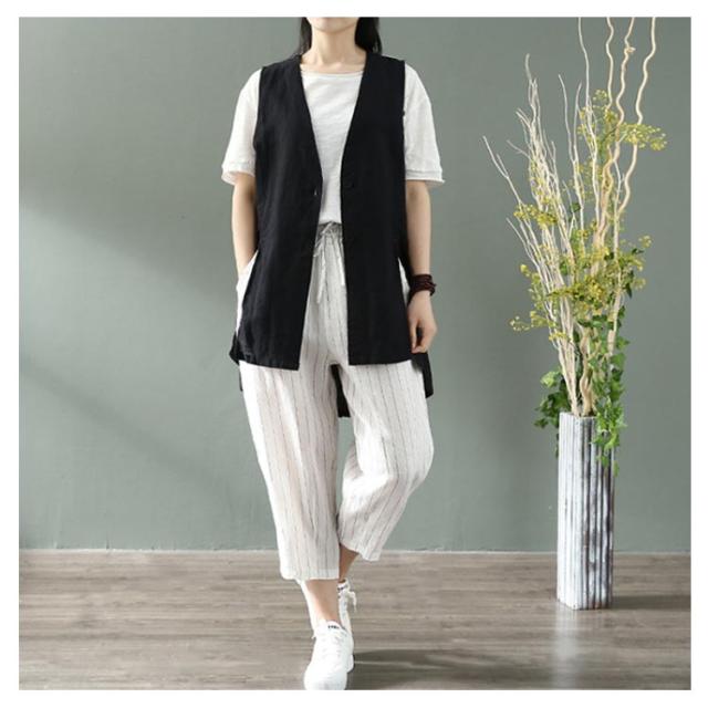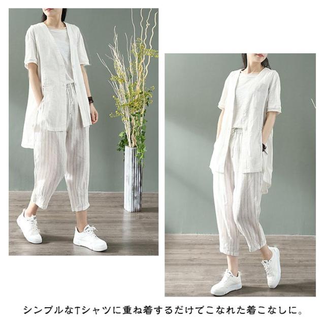 | プラスするだけでワンランクアップのお酒落。 薄手&通気性抜群のリネン素材、春夏のレイヤードコーデにかかせない1枚。 シンプルなTシャツに重ね着するだけでこなれた着こなしに。 ヒップをすっぽり隠れる後ろ長めの丈感です。 パンツスタイルもワンピーススタイルも、カジュアルからきれいめまで様々なスタイルに合わせやすいロングベストです。 | |