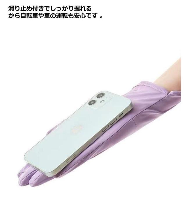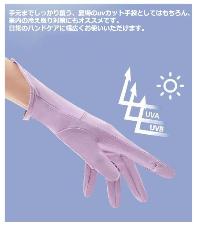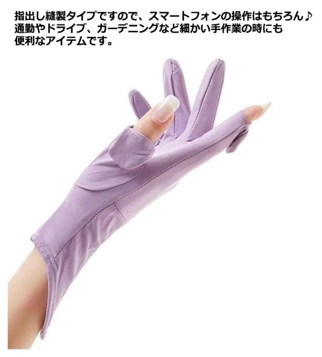 | ひんやりしていて、春夏にピッタリのUVカット手袋です。 接触冷感材質を採用して、水や汗で濡れると気化熱の作用により冷却効果があり 指出し縫製タイプですので、スマートフォンの操作はもちろん♪通勤やドライブ、ガーデニングなど細かい手作業の時にも便利なアイテムです。 滑り止め付きでしっかり握れるから自転車や車の運転も安心です 手元までしっかり覆う、夏場のuvカット手袋としてはもちろん、室内の冷え取り対策にもオススメです。日常のハンドケアに幅広くお使いいただけます | |