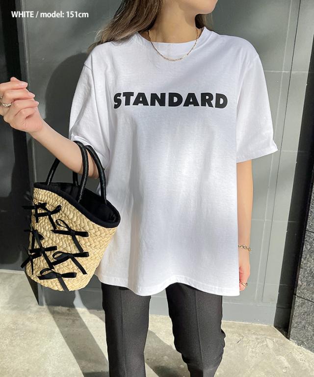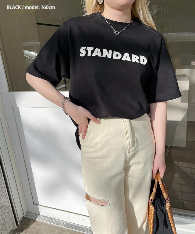 STANDARDロゴプリントビッグ半袖Tシャツ レディース トップス 春 夏 コットン100% 綿100% カジュアル 韓国ファッション 薄手 おしゃれ カジュアル ストリート プリントT ゆったり 大きめ カットソー 柔らか やわらか 軽量 軽い ゆるシルエット 普段着 着回し デイリー ベーシック 大きい 体型カバー 楽ちん シンプル かわいい ロゴTシャツ プリントTシャツ ロゴT ゆるT クルーネック ラウンドネック 丸首 ホワイト ブラック グレー 白 黒 灰色 白T 黒T 韓国 普段使い ナチュラル 可愛い かっこいい 英字 英語 ワンマイル 通勤 通学 学校 オフィス 仕事 会社 春 夏 デイリー 部屋着 パジャマ 寝巻 スポーツ 運動 アウトドア レジャー スポーティー ジム ヨガ フィットネス 野外 街着 散歩 ジョギング ランニング ヒップホップ 衣装 レッスン 練習着 k-pop イベント コンサート フェス ポップ 新生活 新学期 学校 中学生 高校生 学生 大学生 大人 女性 婦人 10代 20代 30代 40代 50代 定番 半袖 Tシャツ スーツインナー SNS 映え 動きやすい 快適 シンプルTシャツ ワンポイント ティーシャツ ティシャツ ロゴティー ルーズ ルーズT 二の腕カバー 白T プルオーバー 肩落ち ママコーデ ママファッション 大人世代 ミセス 上品 旅行 トラベル お花見 ピクニック オフィスカジュアル 高見え 買い物 ショッピング 人気 トレンド 流行り 流行 5分袖 五分袖