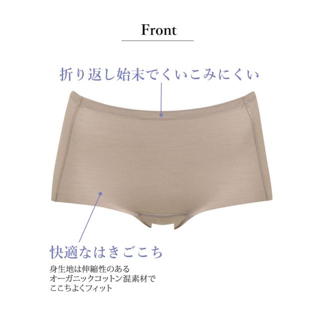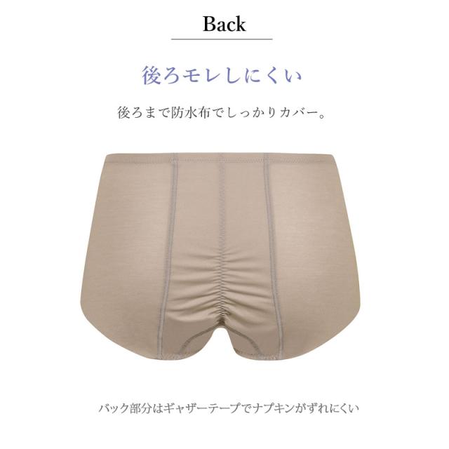 | 特徴 | 【ナイト用】 羽付きナプキンに対応する サニタリーショーツ ・身生地は伸縮性のあるオーガニックコットン混素材を使用し、ここちよくフィット ※オーガニックコットンは、栽培時の農薬や化学肥料を抑え、土壌汚染など環境に配慮した素材です。 ・バック部分はギャザーテープでナプキンがズレにくい ・裾はフリーカッティング始末 ・ウエスト上辺は折り返し始末でくいこみにくく、寝る時も安心感のある深ばき設計。 ・本体マチ肌側から後ろ身頃に防水布を使用し、おしり側の面積が大きく、横も後ろも漏れにくく、多い日や夜に対応。 浮かしマチ部はメッシュ素材使用 ・はきこみ丈:ふかめ(深ばき) |