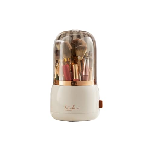 Tanosimi メイクブラシケース メイクボックス ホルダー 化粧ブラシ収納 蓋付き 透明 仕切り 大容量 360°回転 防湿 防塵 省スペース 小