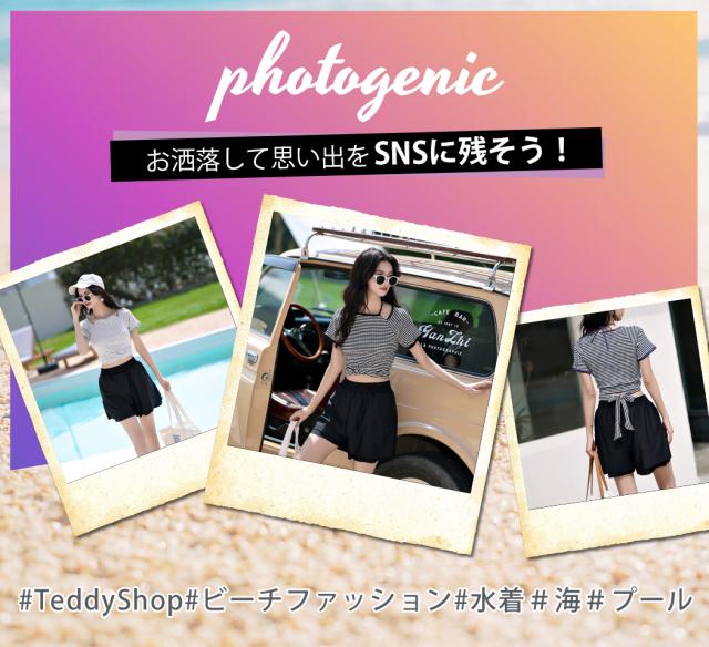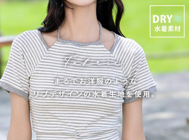 まるでお洋服のようなリブデザインの水着生地を使用。