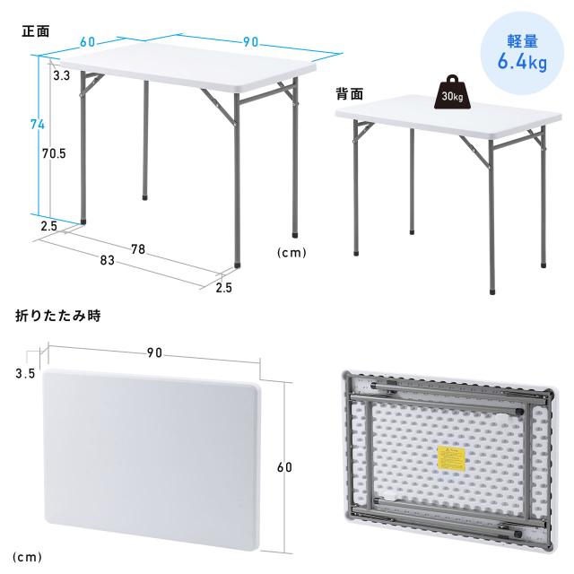 折りたたみテーブル 折りたたみデスク ミーティングテーブル 樹脂天板 屋外 軽量 幅90cm 奥行60cm 高さ74cm ホワイト[100-FD025W]