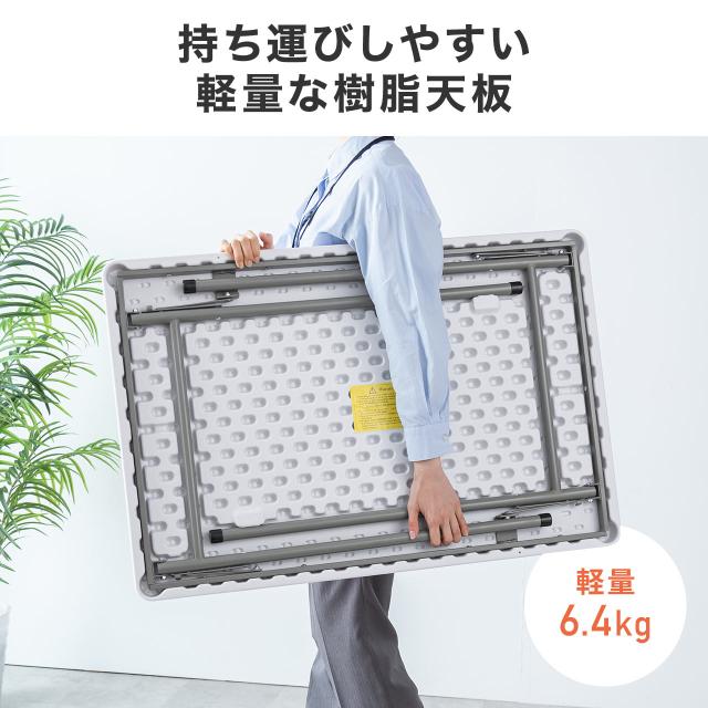 ●樹脂天板の為、木製天板の折りたたみテーブルより軽量です。