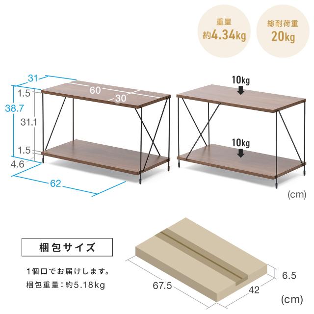 ⇒ご購入の前にご確認下さい見せる収納棚として使えるオープンラック。木目調×スチールでスタイリッシュな見た目です。横幅60cmの2段タイプ。ネジがなく工具も不要なので簡単組み立てです。【WEB限定商品】