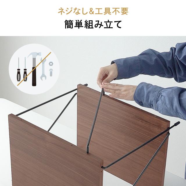 ●落ち着いた木目調で部屋に馴染むシェルフです。●穴にワイヤーフレームを差込むだけの簡単組み立て設計です。