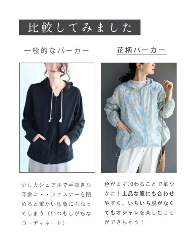 w60682ps 新作 新着 再入荷 CAWAII FRENCHPAVE フレンチパヴェ エレガント ベーシック カジュアル 可愛い かわいい カワイイ おしゃれ オシャレ お洒落 個性 個性的 定番 ベーシック 大人かわいい 大人可愛い 上品 女性らしい デザイン スタンダード ナチュラル きれいめ キレイめ シンプル フェミニン レディース レディースファッション 大人 ママ ミセス 30代 40代 50代 60代 UVカットできる 軽量 パーカー UV カット率 97%以上 羽織り ジップパーカー ジップアップパーカー ライトアウター 軽アウター ジップアップ 長袖 長そで ロング袖 S M L 2L LL XL 3L LLL XXL フリーサイズ フリー 小さめ 小さめサイズ小さい 小さいサイズ 低身長 痩せ ほっそり 小柄 細身 標準サイズ 大きめシルエット 大きい 大きめ ビッグシルエット ぽっちゃり F サイズ自由 体型カバー 体型隠し 体型隠れる 楽ちん 楽チン UVカット 紫外線カット UV対策 紫外線対策 日焼け対策 薄手 涼しい ずずしい 春 夏 春服 春物 夏 夏服 夏物 柄 総柄 花 フラワー柄 小花 小花柄 ピンク ブルー 水色 日常着 普段着 日常使い おでかけ 旅行 家族旅行 アウトドア