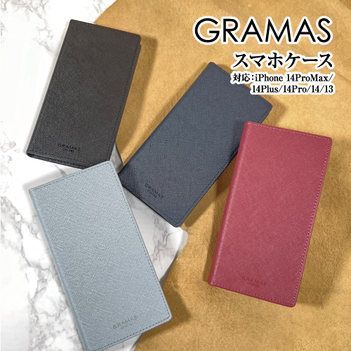 送料無料 GRAMAS/グラマス【G-FOLIO】サフィアーノPUレザー フォリオケース iPhone14ProMax/ 14Plus/ 14Pro/ 14/13 手帳型ケース フリップケース 合皮 MIL規格
