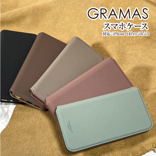 送料無料 GRAMAS/グラマス【Shrink】PUレザー フォリオケース iPhone14ProMax /14Pro /14 /13 手帳型ケース フリップケース 合皮 ワイヤレス充電 MIL規格