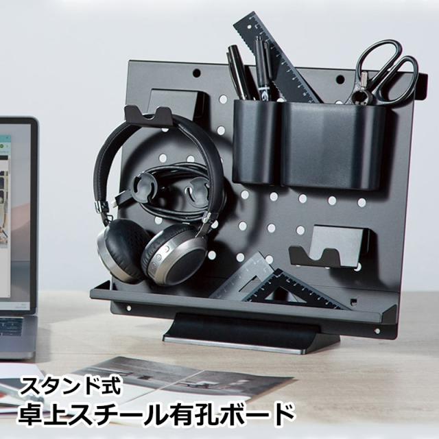 サンコー スタンド式 卓上スチール有孔ボード 卓上収納 有孔ボード パンチングボード デスクオーガナイザー ヘッドホンスタンド スマホスタンド ゲーミングデスク TACMPBSBK 送料無料