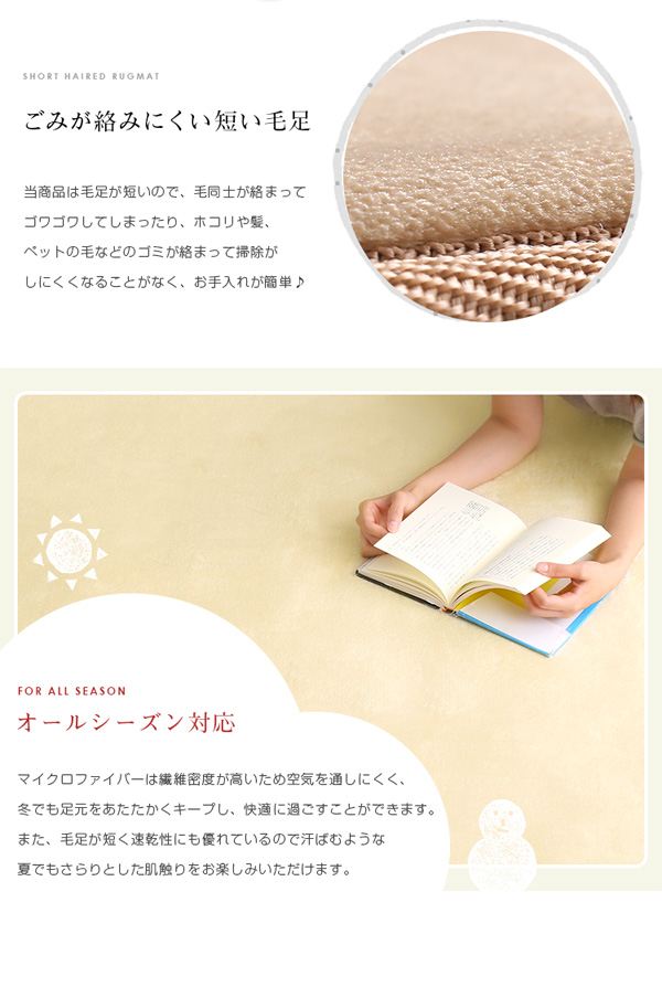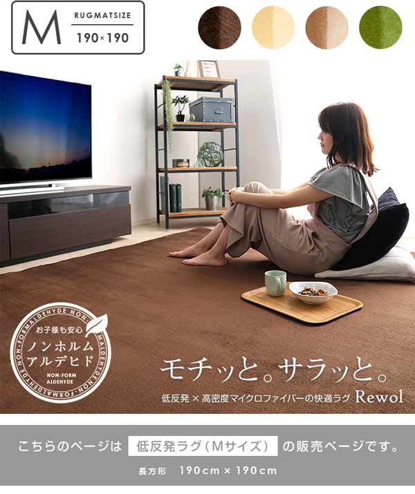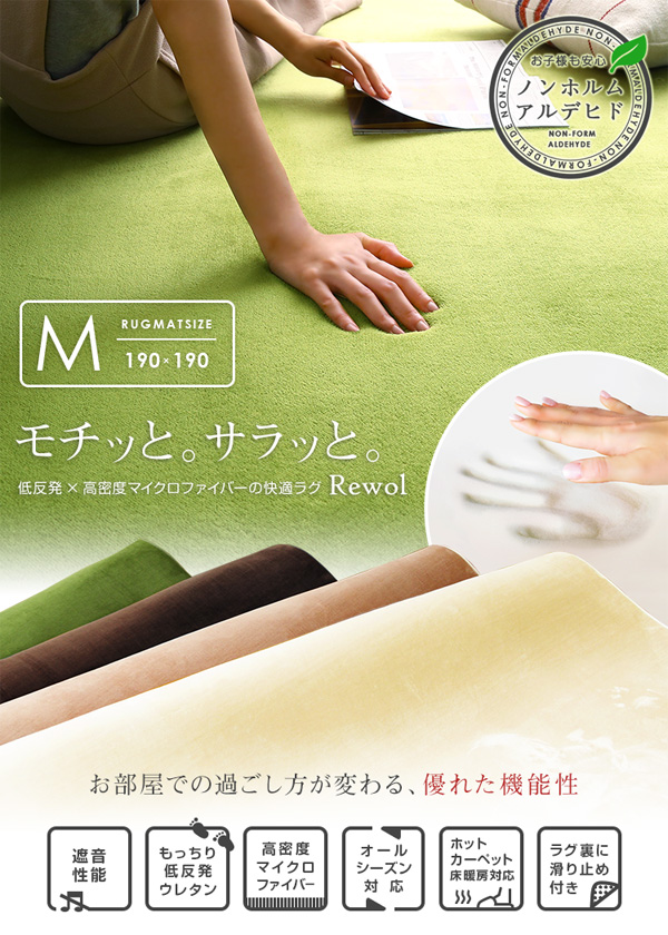 高密度マイクロファイバー・低反発ラグマットMサイズ(190×190cm)ホットカーペット、床暖房対応