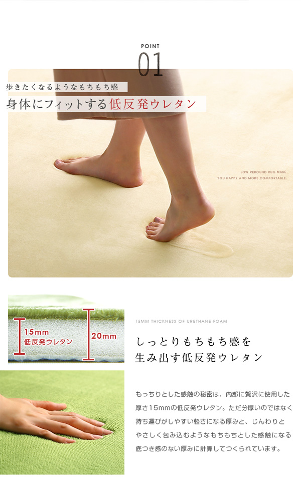 しっとりもちもち感を生み出す15mm厚の低反発ウレタン使用。