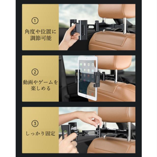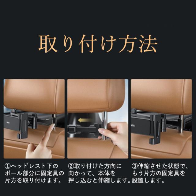 タブレットホルダー iPad 車載 スマホホルダー 汎用 後部座席 ヘッドレスト 車載ホルダー スマホ タブレット ホルダー 伸縮アームスタンド iPhone Android Nintendo Switch スイッチ ドライブ モニター 動画鑑賞 強力 取付簡単 スマホスタンド iPhone15 Pro Max mini 角度調整 テレビ 動画 映画 アニメドラマ ゲーム 子供 こども