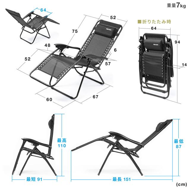 ⇒ご購入の前にご確認下さい背もたれの角度調節が出来るリクライニングチェア。ワーケーションの環境に最適なリラックスした状態で仕事が出来るチェア。アームレストやヘッドレスト標準装備。風通しの良いメッシュ生地を採用。キャンプ、バルコニーなどのアウトドアやオフィスや自宅のくつろぎ空間にも利用可能。コンパクトに収納できる折り畳み式。持ち運びに便利な取っ手付き。【WEB限定商品】