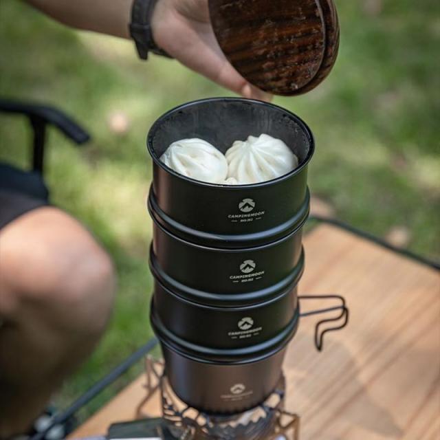キャンピングムーン(CAMPING MOON) シェラせいろ シェラカップ 用 蒸し器 せいろ 点心 ミニセイロ ステンレス304 黒 φ12cm用 3段 BKS362-3P