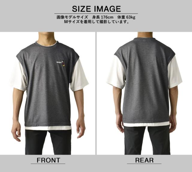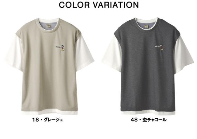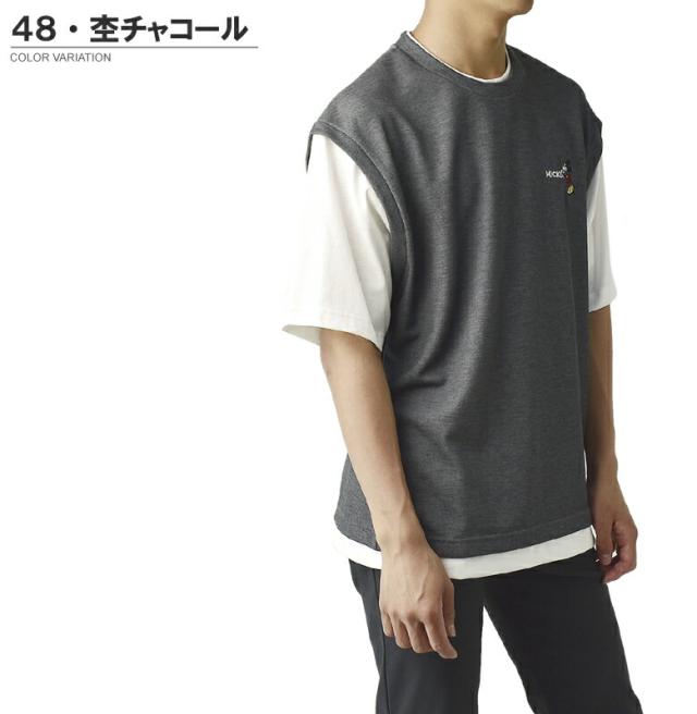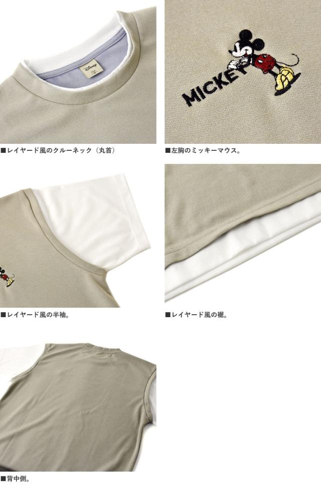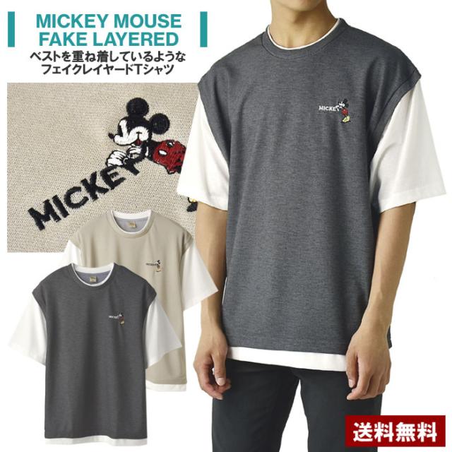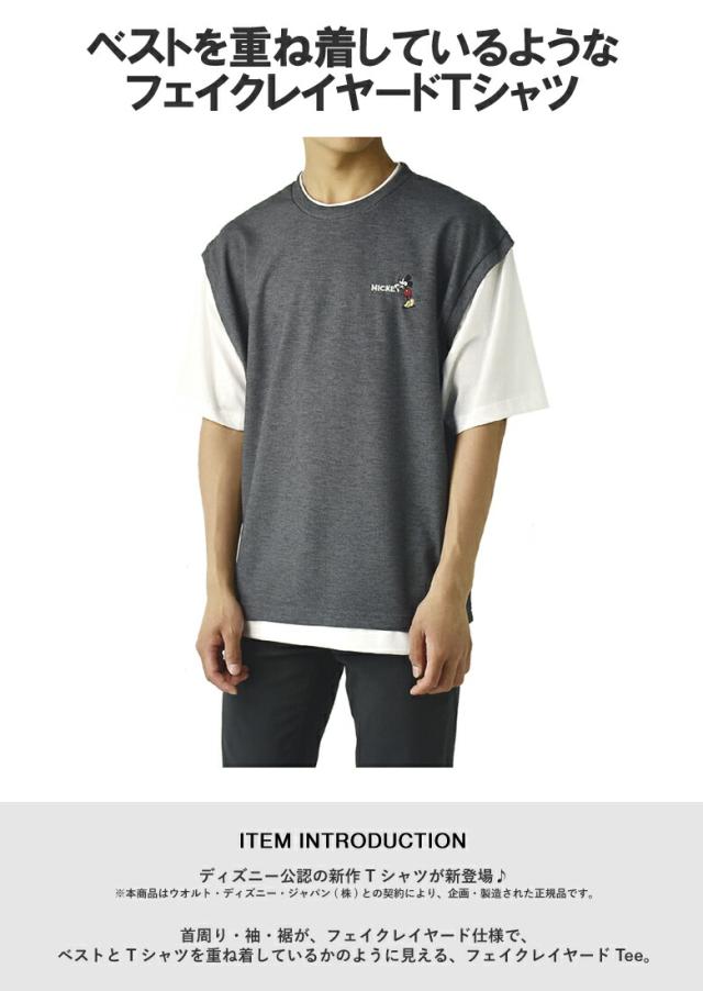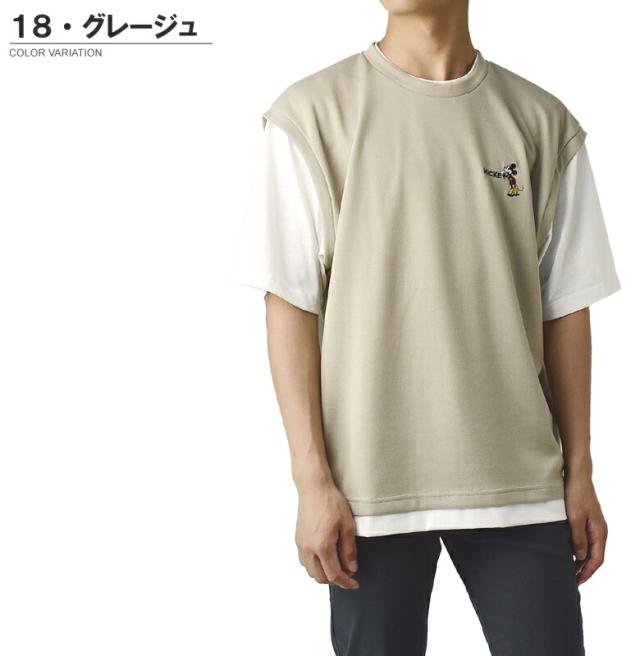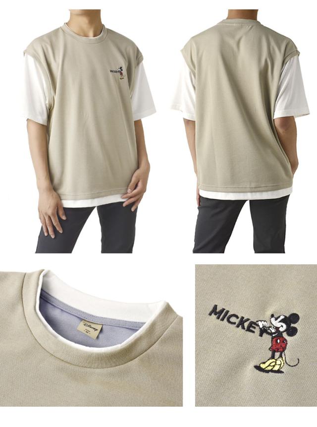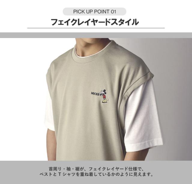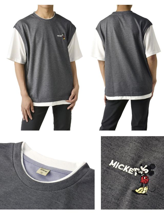ミッキーマウス MICKEYMOUSE メンズ ワンポイント刺しゅう ベスト風 フェイクレイヤード 半袖 Tシャツ カットソー トップス【A6J】【パケ1】