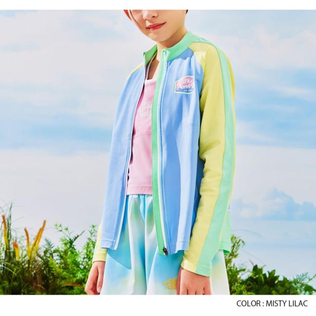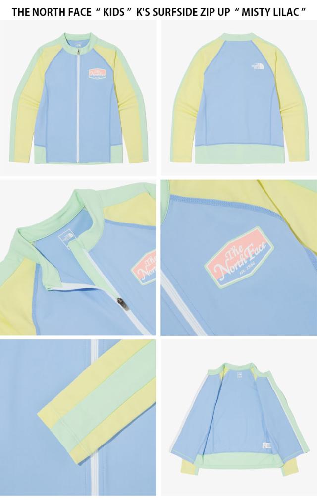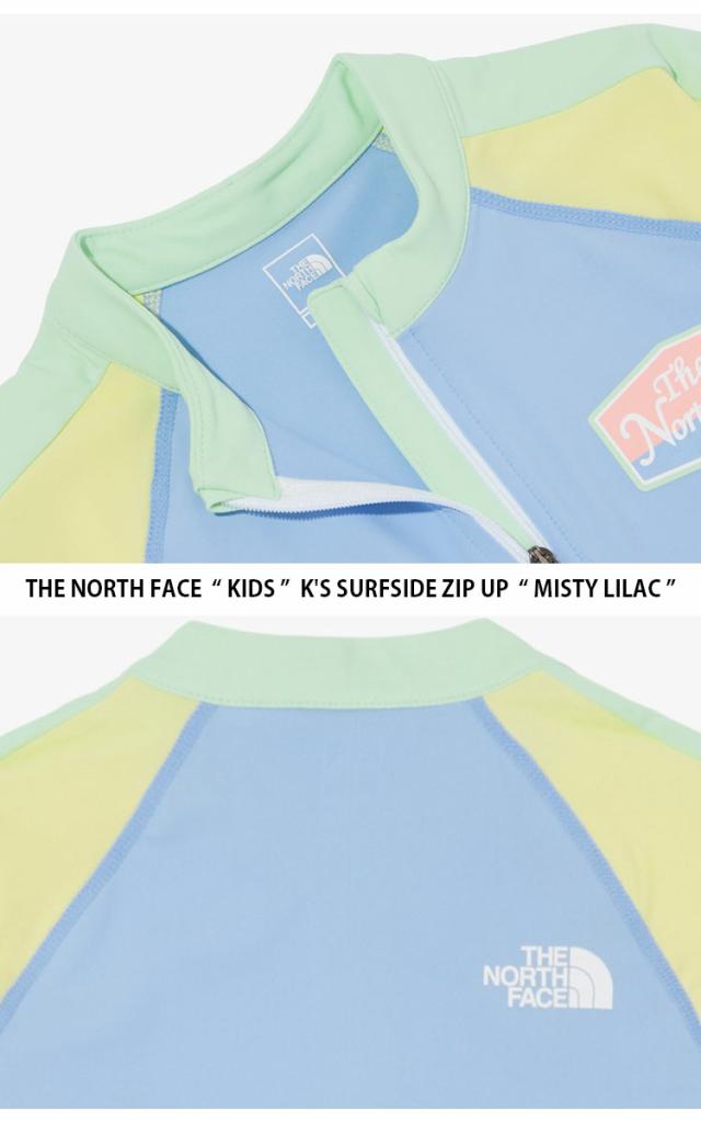 ノースフェイス キッズ ラッシュガード 長袖 ロングスリーブ ジップアップ 水着 スイムウェア スタンドネック ハイネック 立ち襟 ロゴ カジュアル ストリート マリンスポーツ 水泳 パープル ブルー イエロー ピンク