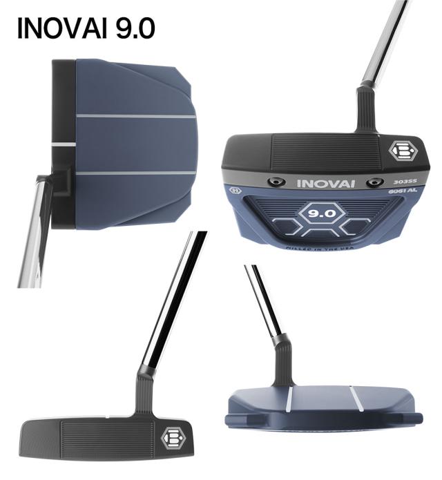 INOVAI9.0はロバート・ベティナルディが今回新たに図面を描き起こしたパターです。幅広のボディは長いサイトライン、テーパー状のフランジとコントロール性を高めるための安定性を生み出すウィングなどが理想的なエイミング効果を引き出します。精度の高い機械加工技術により、ボディとフェースはシームレスに接続し、アライメントを容易にする広いトップラインが特徴です。ソールを均一の深さに削り取ることで生まれた余剰重量を周辺に配分し、M.O.I.(慣性モーメント)を最大化しながら、重心位置にも綿密な検討を加え、安定性とコントロール性を両立させたマレットが誕生しました。Roll ControlTMをフェースにミーリング加工した303SS製フロントピースはインパクト時にボールに前方へのロールを促進し、スキッドとサイドスピンを軽減させるとともに、ツアープレーヤーが好むソフトな打感と打音のフィードバックを実現します。