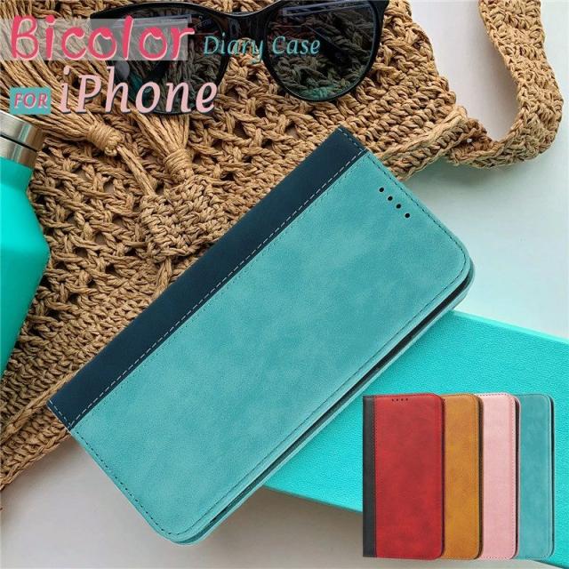 ベルトなし iphone17 air 16e 16pro max ケース 手帳型 iphone15 14 12 11 pro ケース iphone se2 se3 手帳ケース iphone 13 12 mini pro max ケース アイフォン15 XR ケース ベルトなし マグネット スマホケース バイカラー 財布型 icカード入れ レザー 耐衝撃 おしゃれ