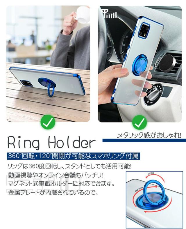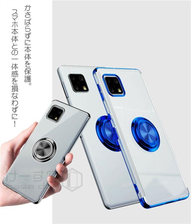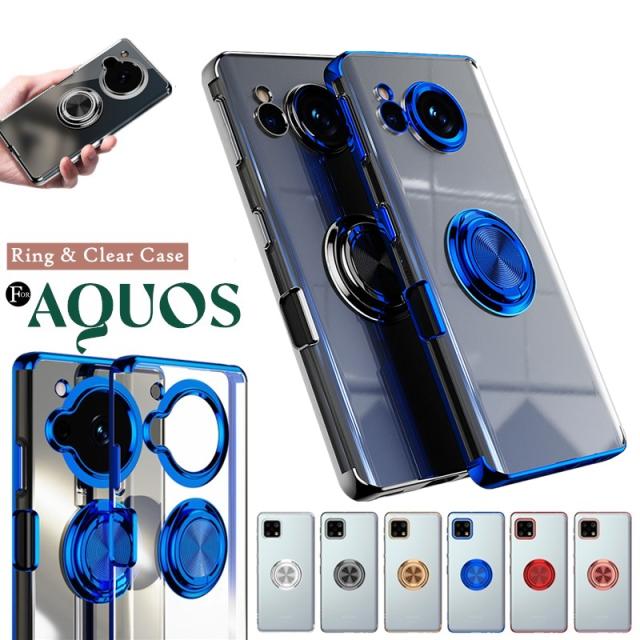 AQUOS R8 sense8 sense7 Plus ケース クリア おしゃれ 透明 AQUOS sense6 wish wish2 SHG06 ウィッシュ 2 透明 携帯 カバー 落下防止 リング sense4 lite 透明ケース aquos センス7 sense6s 保護ケース ソフトケース メッキ加工 耐衝撃 薄型 かわいい メタルカラー リング
