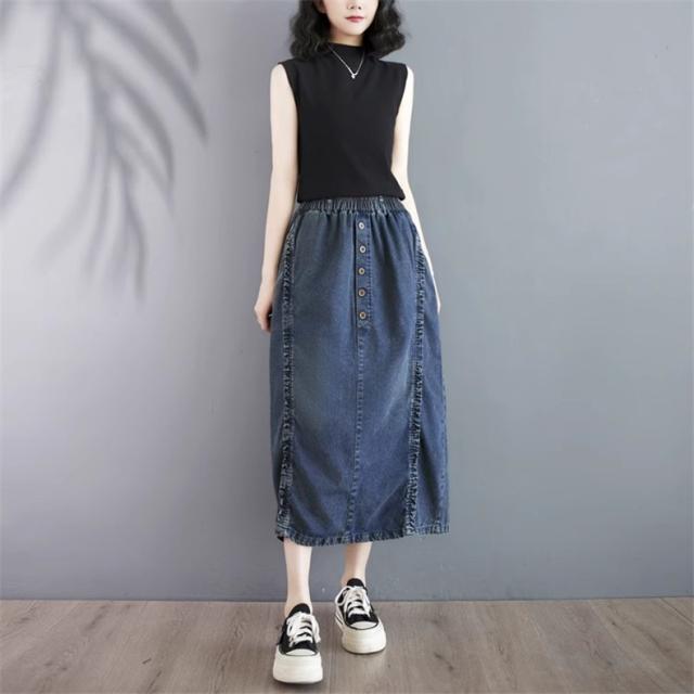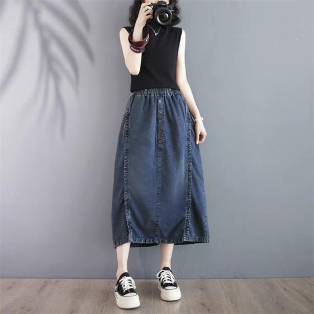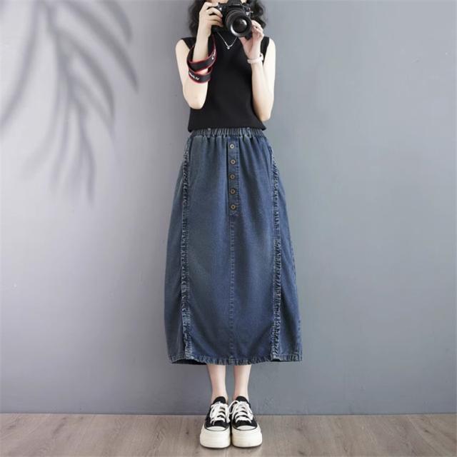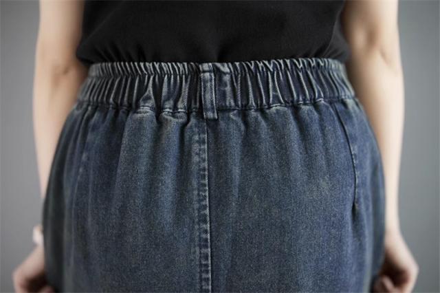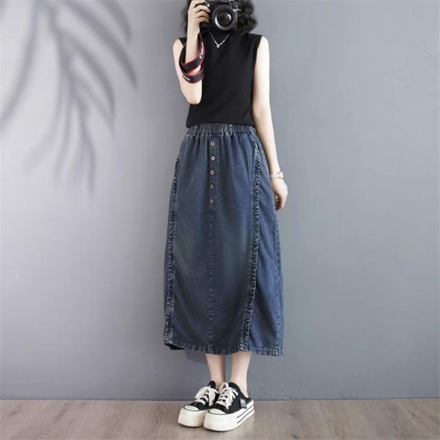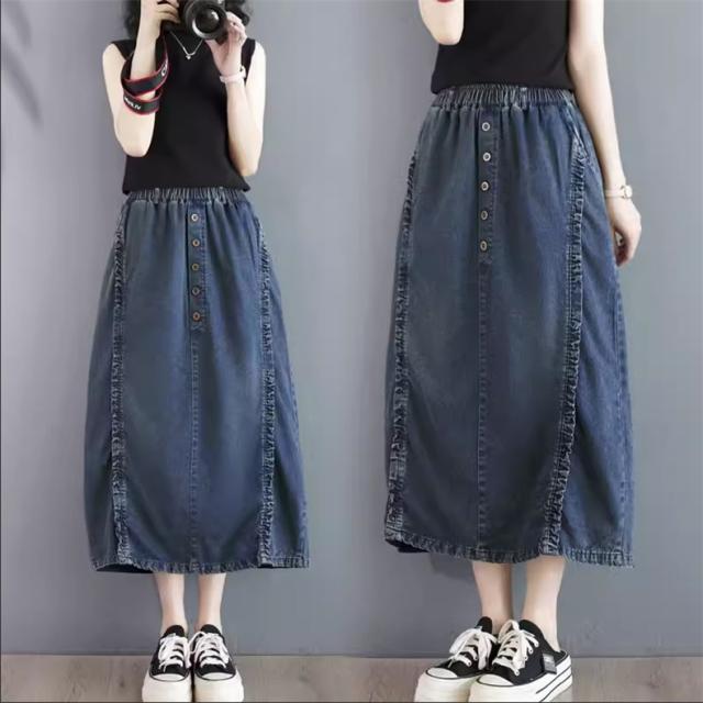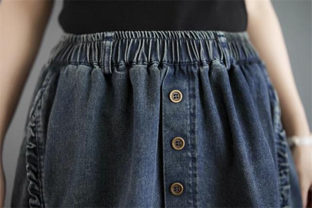 デニムスカート レディース 春ボトムス ワイド ウエストゴム 綿100% 楽な履き心地でデイリーに使いやすい1枚 合わせ次第でロングシーズン着用可能