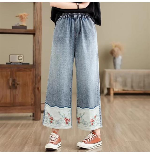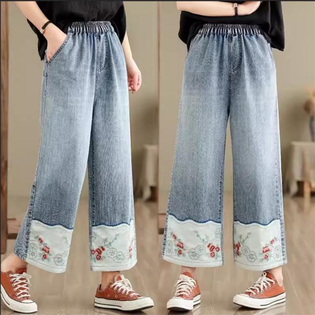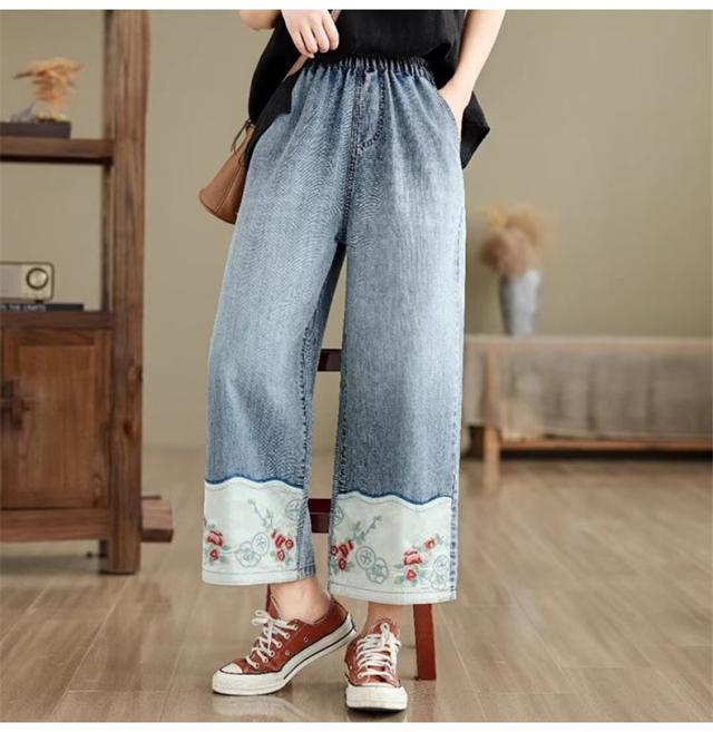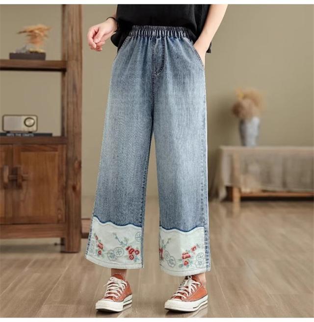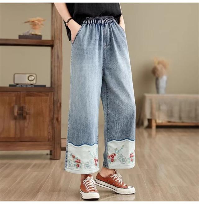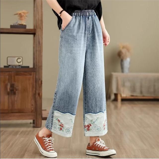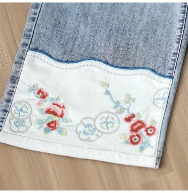 デニムパンツ レディース 春夏 刺繍 ボトムス ズボン ワイドパンツ ストレート 着映えする 大人カジュアルスタイルにぴったり 今年らしい鮮やかな差し色