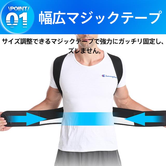 ガッチリ固定する強力幅広マジックテープで抜群の安定感の背筋を伸ばすグッズです。