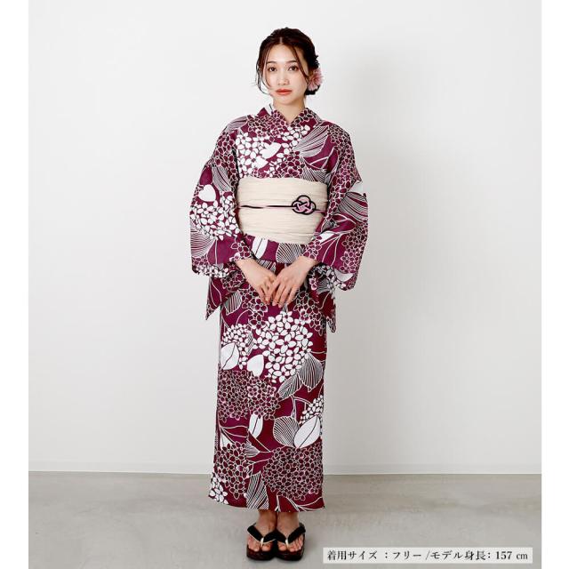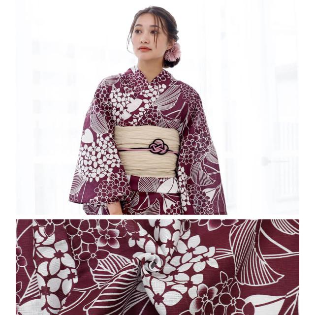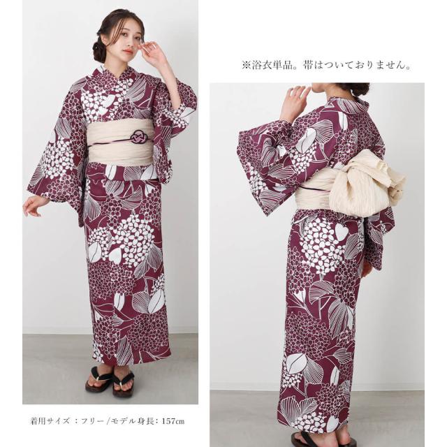 浴衣 レディース 綿麻 女性浴衣 単品 浴衣単品 ゆかた 大人 上品 個性 しっとり 白 えんじ 紫陽花 あじさい 花柄