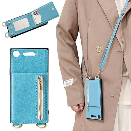 Xperia XZ1 ケース 高質レザー Xperia XZ1 カバー 肩掛け 首かけ 斜めがけ SO-01K ケース ショルダー エクスペリア XZ1 ケース ミラーケース SOV36 ケース 便利 カードポケット スタンド機能 落ち着