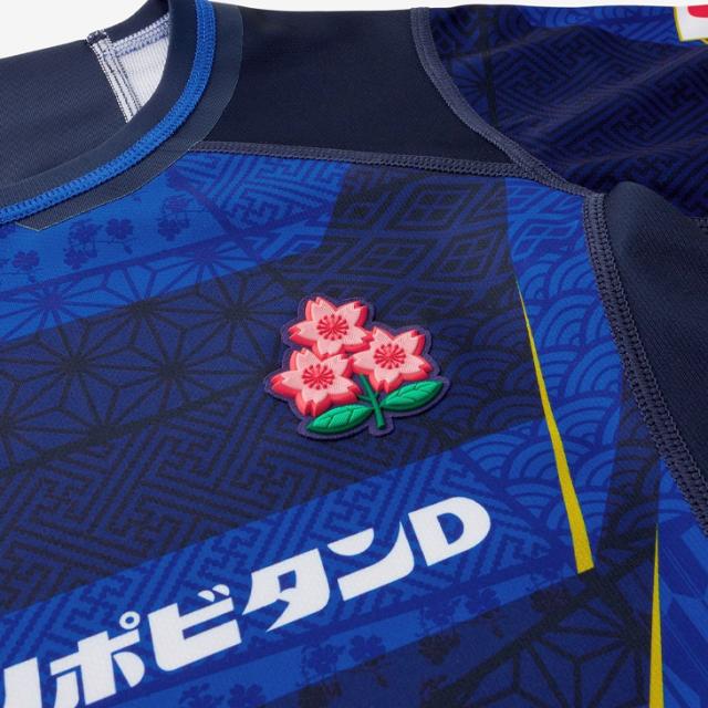 武士の袴をイメージした紺と青のカラーリングに、和の文様を取り入れたオルタネイトジャージー。