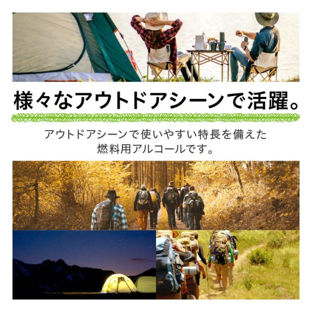 アウトドアシーンで使いやすい特徴を備えた燃料用アルコールです。