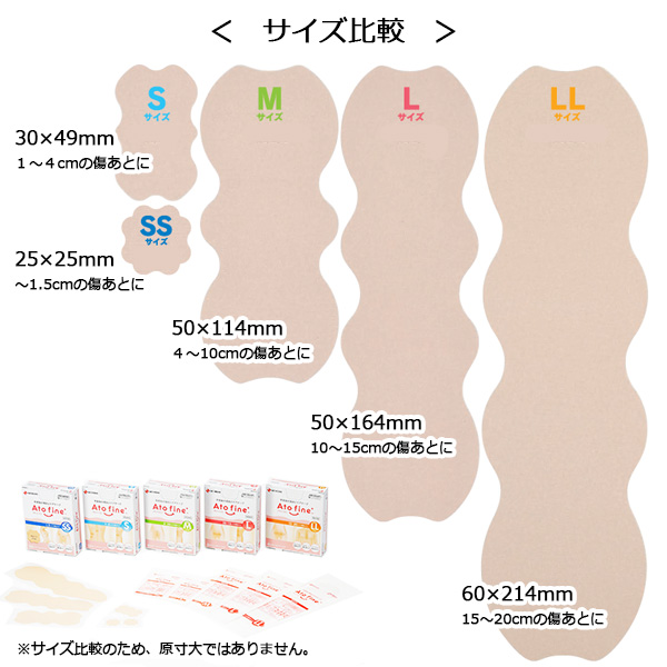 ・SS、S、M、L、LLの5サイズを用意。帝王切開から内視鏡手術まで幅広いサイズの傷あとに対応