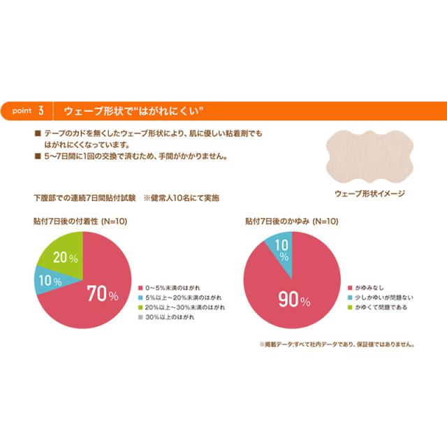 ・肌に優しい粘着剤を使用。長期間貼っても刺激が少なく、はがす時も肌を傷めにくいので長期間ケアを続けやすい