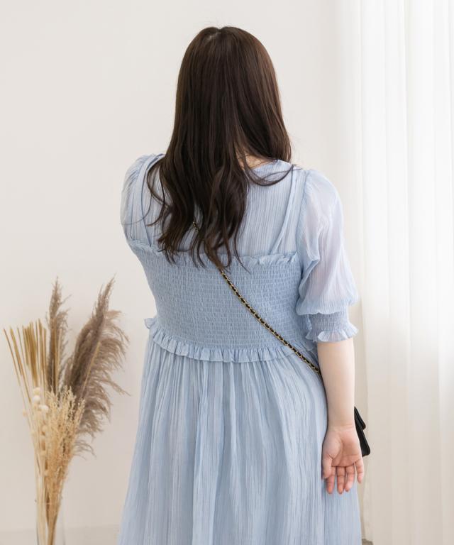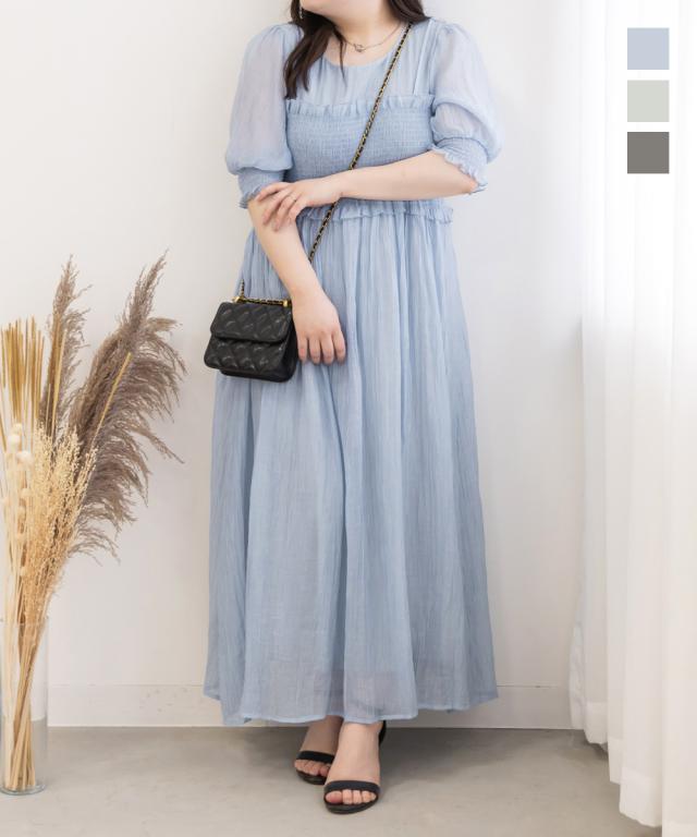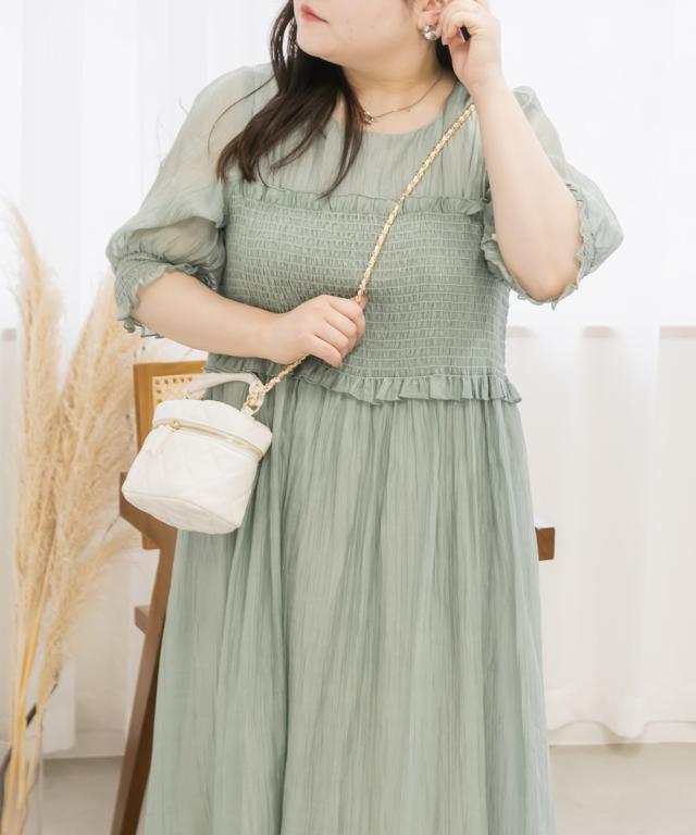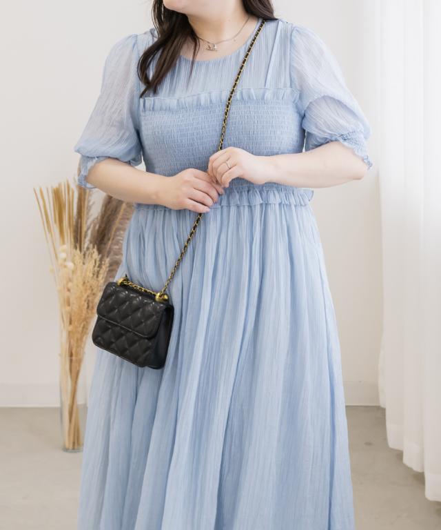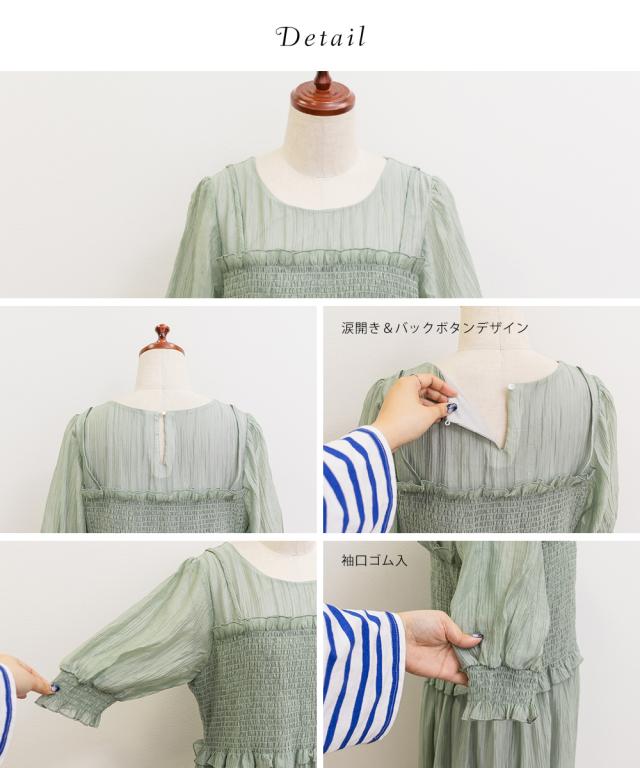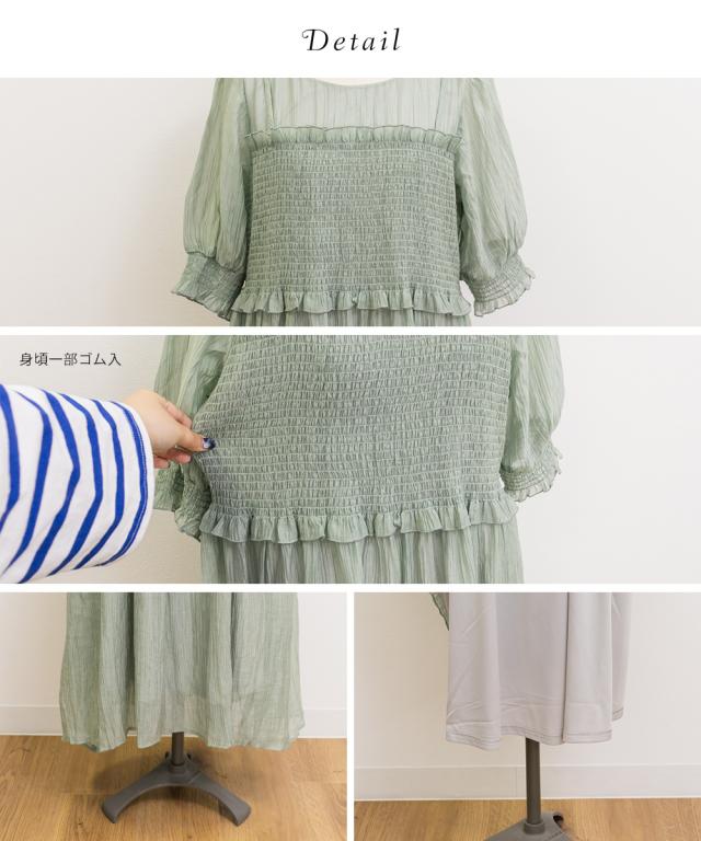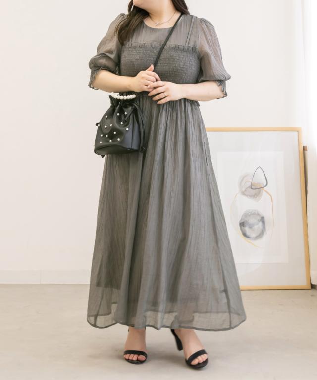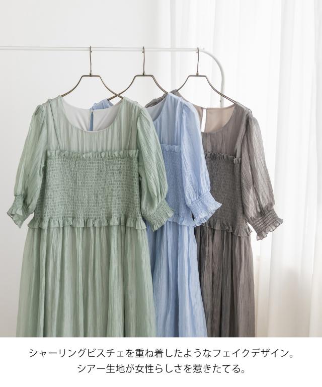 大きいサイズ/レディース/LL/3L/4L/CLETTEオリジナル★レイヤード風シャーリングワンピース