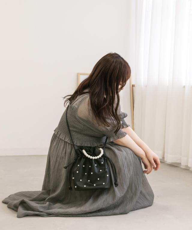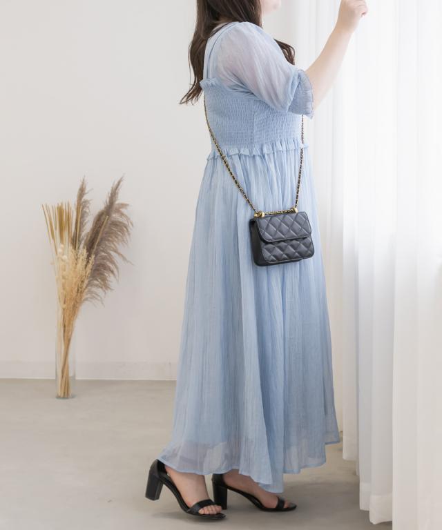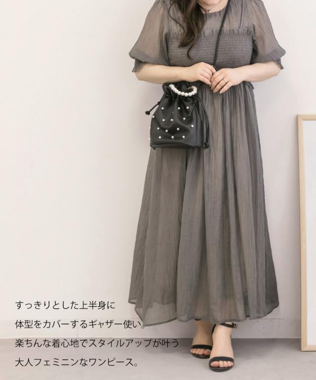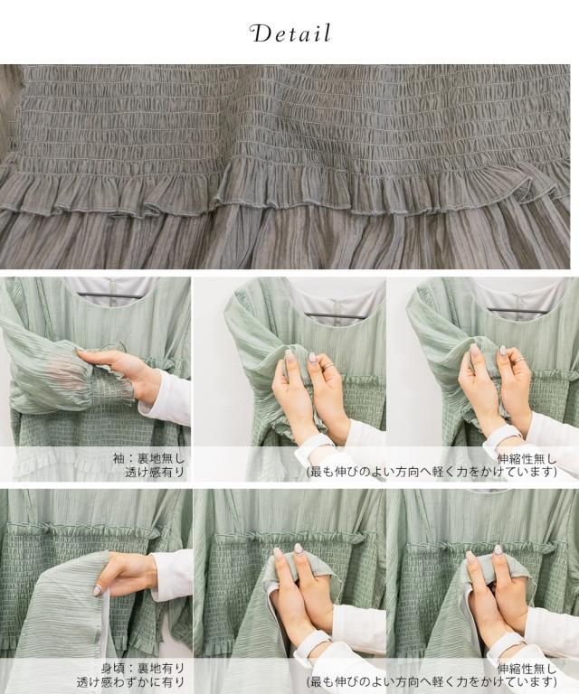 | シワ加工が施された透け感のある柔らかい素材です。 ※伸縮性のある裏地付き。 |