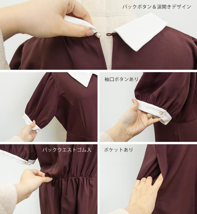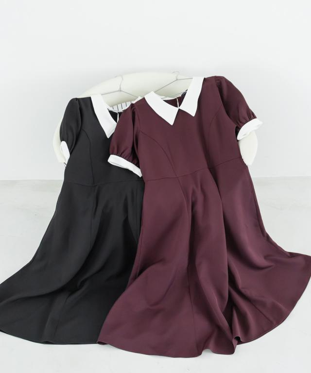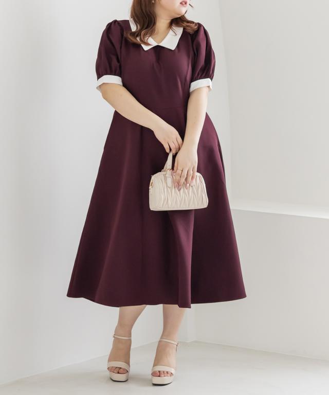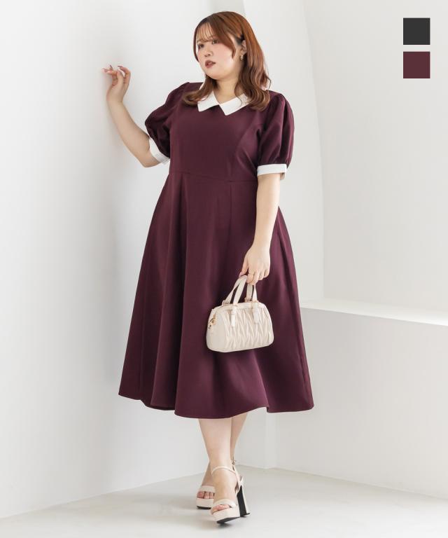 大きいサイズ/レディース/LL/3L/4L/CLETTEオリジナル★配色襟半袖ワンピース