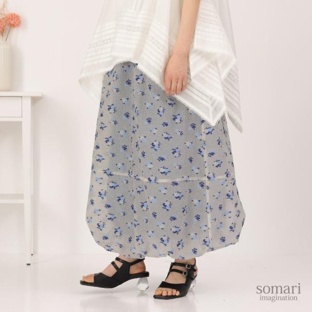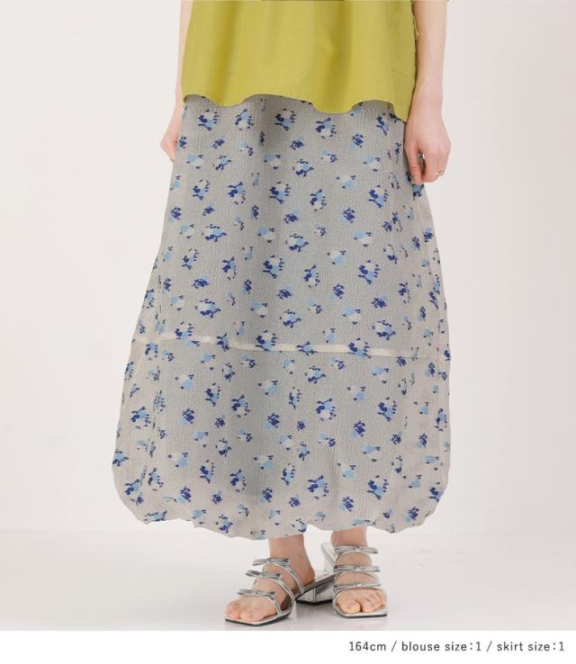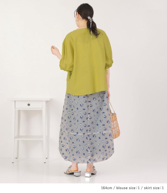 【送料無料】『リネンブラウス×花柄バルーンスカートコーデ2点SET』【メール便不可】【30】[2点コーデセット 2024 レディース ブラウス 半袖 プルオーバー ロングスカート シアー ジャカード]