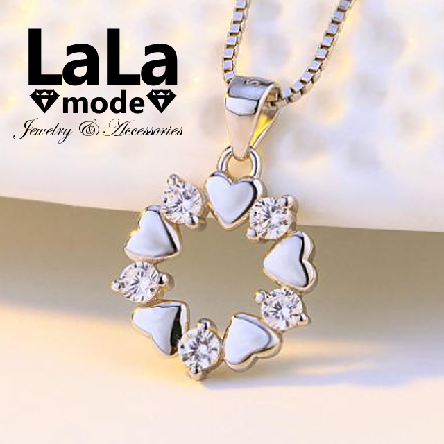 ネックレス レディース ハート 花 フラワー リース CZダイヤモンド AAAA キュービック ジルコニア シルバー プラチナ コーティング仕上げ アレルギー対応 送料無料 プレゼント 人気 かわいい 願い シンプル アクセサリー ジュエリー