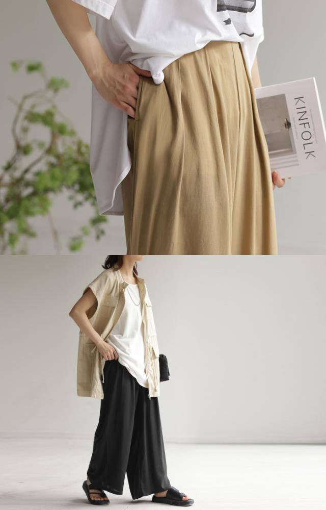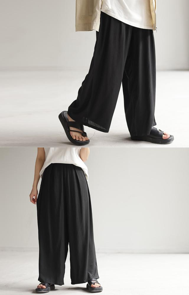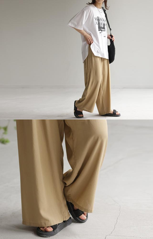 麻混素材のリラックス感あるシルエットのイージーワイドパンツです。