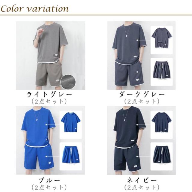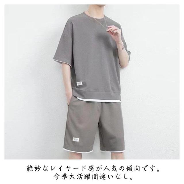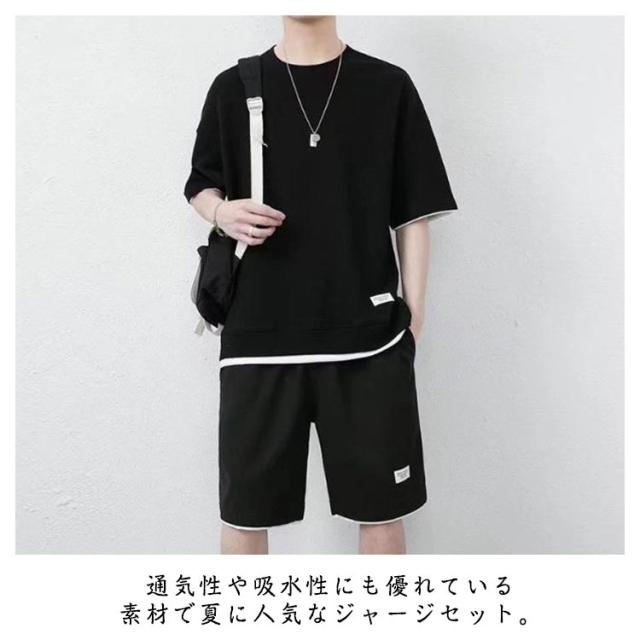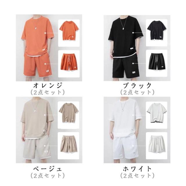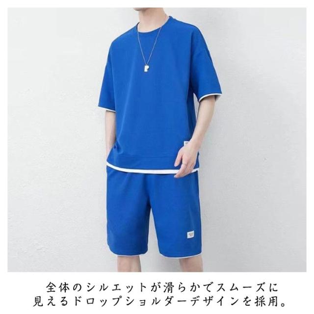 セットアップ 半袖 トレーナー カジュアル ジャージ スウェット 上下セット 2点セット クルーネック Tシャツ 接触冷感 薄手 ハーフパンツ ショートパンツ 上下セット メンズ ゆったり スポーツウェア 大きいサイズ 部屋着 夏