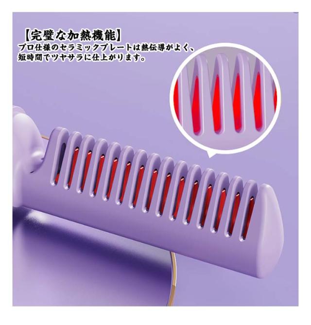 | 【便利なコードレス】前髪や顔まわり、トップなどの毛束に立体感を作り出すためのミニヘアアイロンです。 【ヘアケア効果】使用中に毛が引っ張られたり傷んだりする心配がなく、滑らかな使い心地を提供します。 【完璧な加熱機能】プロ仕様のセラミックプレートは熱伝導がよく、短時間でツヤサラに仕上がります。 【忙しい朝も2分で髪リセット】ストレートブラシが持っていれば、慌てないように、2分間でクイックスタイリング。 【3段階温度調節可能】 160度? 180度?200度の3段階調節機能で、毛質に合わせて温度調整できます。 【髪を傷まない】ヒートブラシのクシ先端は耐熱素材に包まれて直接肌に触れないので、挟んで使うタイプと比べて火傷をする心配がありません。 【軽量】僅か160g超軽量なので、さまざまな髪型を手軽に作ることができます。 【便利なType-C充電】Type-C充電に対応しており、最大で30分間使用可能です。 【携帯便利】コンパクト&軽量だから部活、ジム、旅行、オフィスなど家以外でも持ち運びに便利! 【ストレートとカール両用】ストレートとカールを使い分けることができる両用ヘアアイロンです。 | |