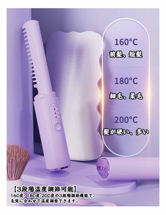 急速加熱 軽量 ヒートブラシ ヘアアイロン カール ストレート 2way ストレートアイロン USB充電式 コードレス ヒートブラシ カールアイロン 携帯用 ヘアブラシ 持ち運び 小型 3段階温度調整 家庭 旅行用 プレゼント