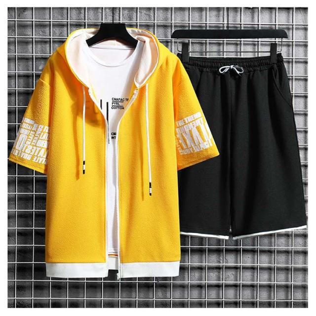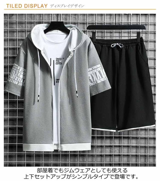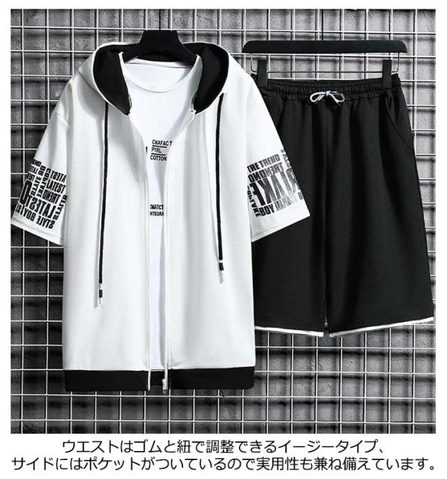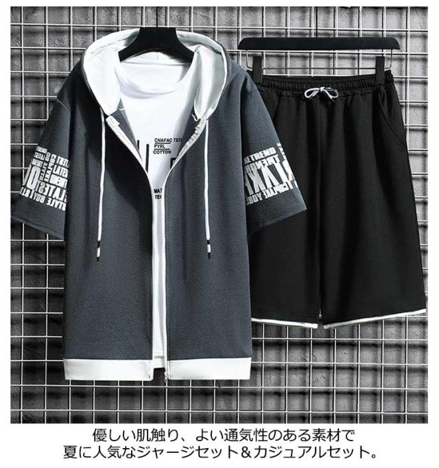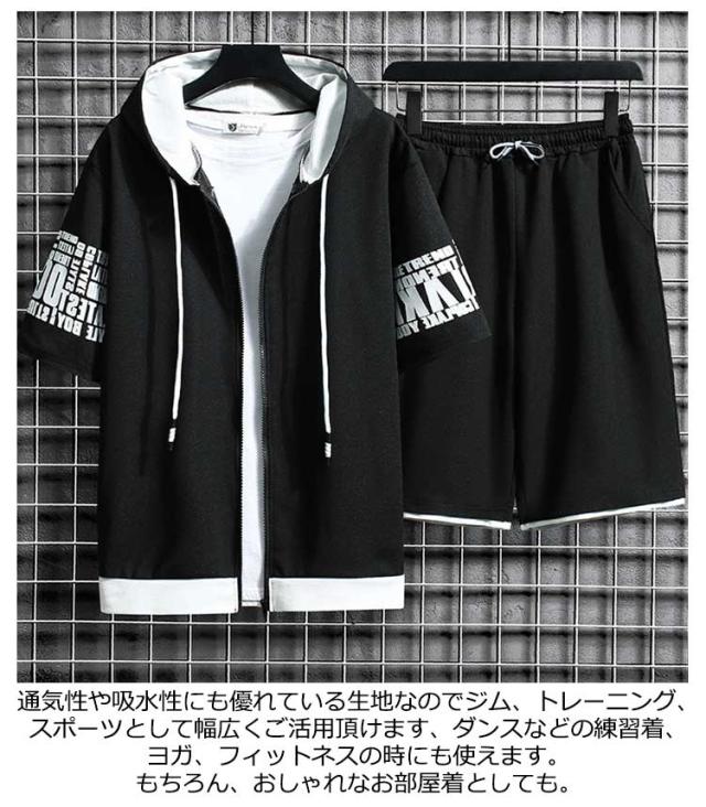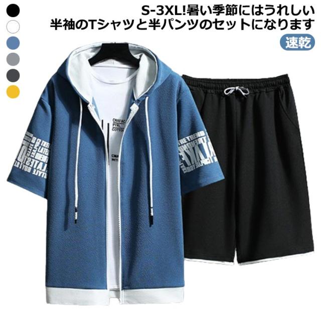 通学 上下セット ジャージ 夏 夏物 ハーフパンツ セットアップ 清涼 ジャージ メンズ ルームウェア 速乾 短パンツセットアップ セットアップ 半袖Tシャツ フード付き 大きいサイズ ショートパンツ プルオーバー 上下 S M L XL 2XL 3XL 送料無料