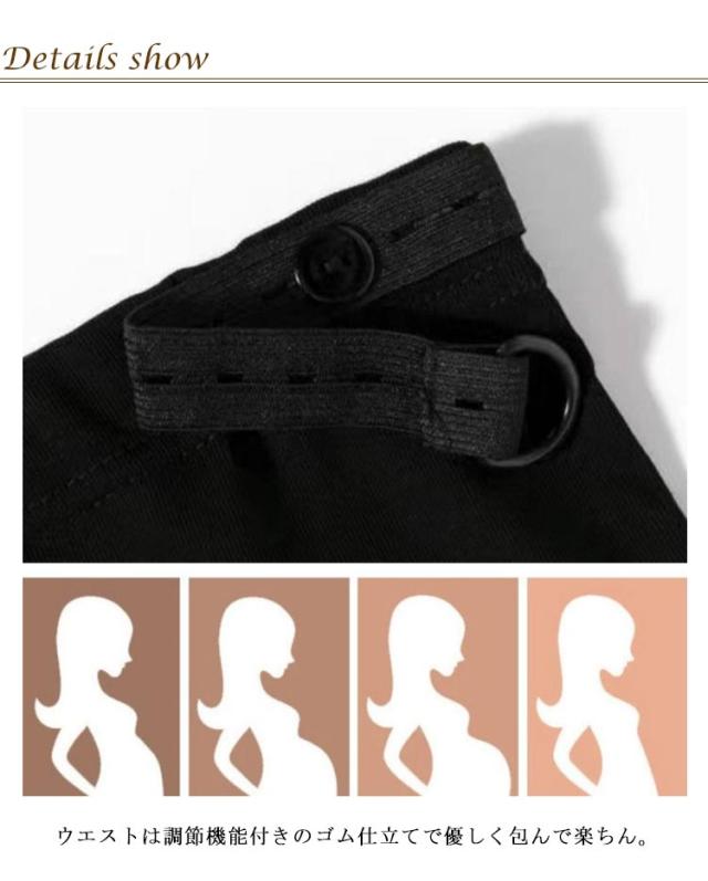 | M-3XL!シンプルながら穿きやすいマタニティチノパンツ。 ウエストは調節機能付きのゴム仕立てで優しく包んで楽ちん。 脚は引き締めてすっきりとした美脚ラインをだし、お腹は無理なくカバー。 もたつき感のない穿き心地なのに、お腹を締め付けないこだわりデザインになります。 肌触り優しい、通気性抜群の生地、快適な穿き心地。 | |