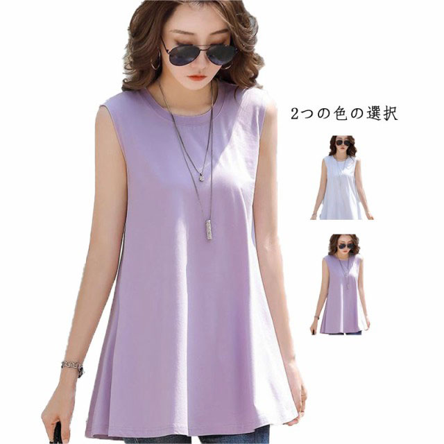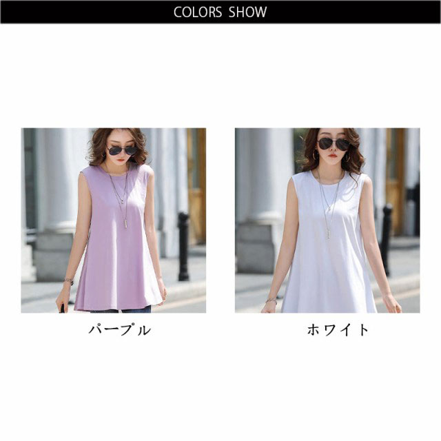 インナー タンクトップ レディース ロング 大きいサイズ ノースリーブ トップス Tシャツ ロングタンクトップ カジュアル 春 夏 ゆったり 体型カバー タンクトップ チュニック ノースリーブシャツ インナートップス キャミソール 重ね着 ロンT フレア Aライン 送料無料