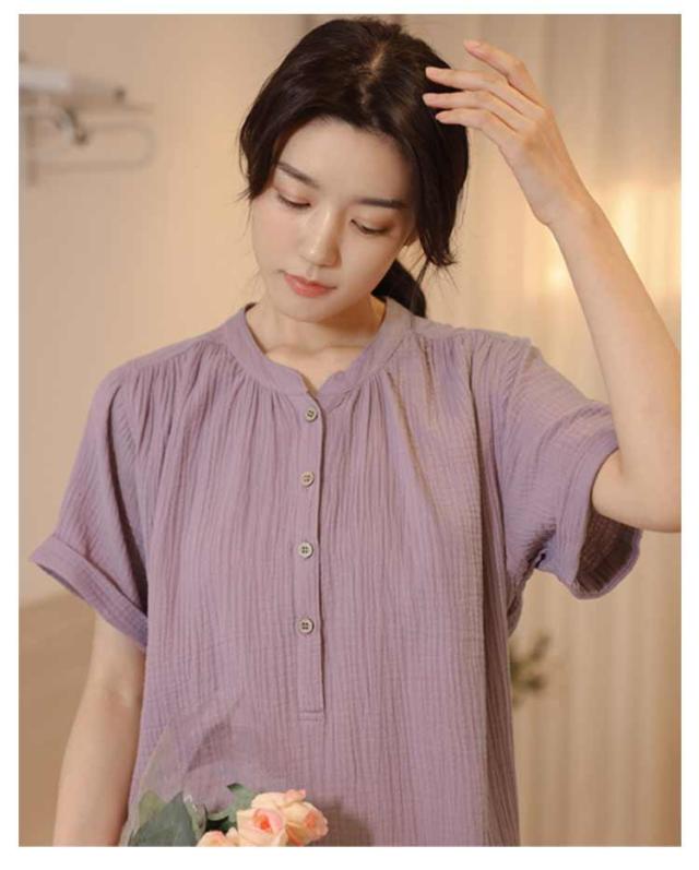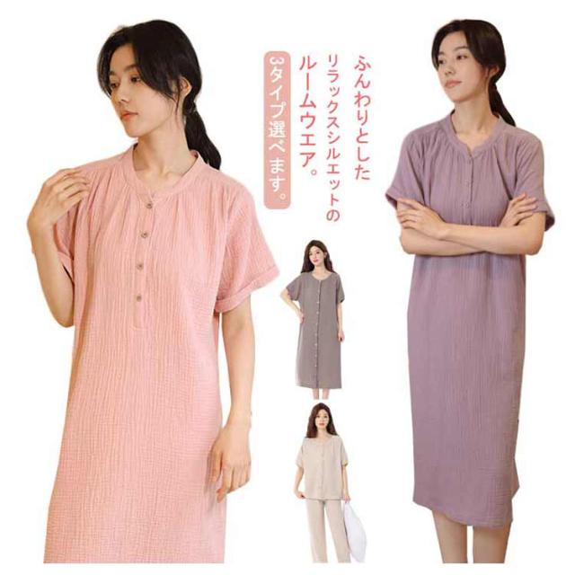 | ふんわりとしたリラックスシルエットのルームウエア。 3タイプ選べます。 肌当たりの良いコットンガーゼ素材を用いて、涼しげな表情に仕上げています。 在宅のリラックスタイムにぴったりのアイテム。 | |